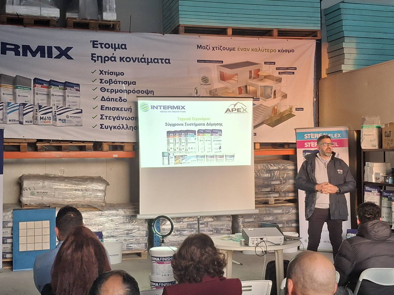 Η INTERMIX, σε συνεργασία με την APEX Facility Management, διοργάνωσε τεχνικό σεμινάριο στη Σάμο με θέμα τις σύγχρονες λύσεις δομικών υλικών και τα ολοκληρωμένα συστήματα εφαρμογής για το σύγχρονο εργοτάξιο.